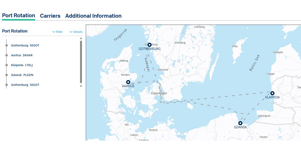 - Port rotation: Gothenburg - Aarhus - Klaipeda - Gdansk - Gothenburg